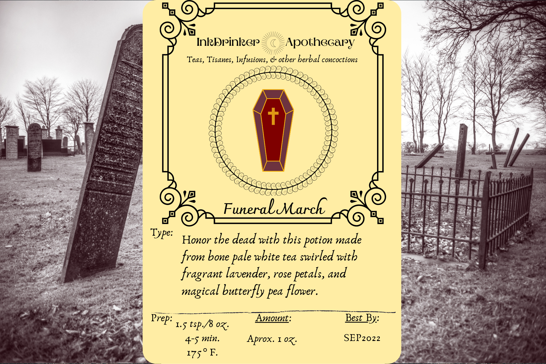 Honor the dead with this potion made from bone pale white tea swirled with fragrant lavender, rose petals, and magical butterfly pea flower.