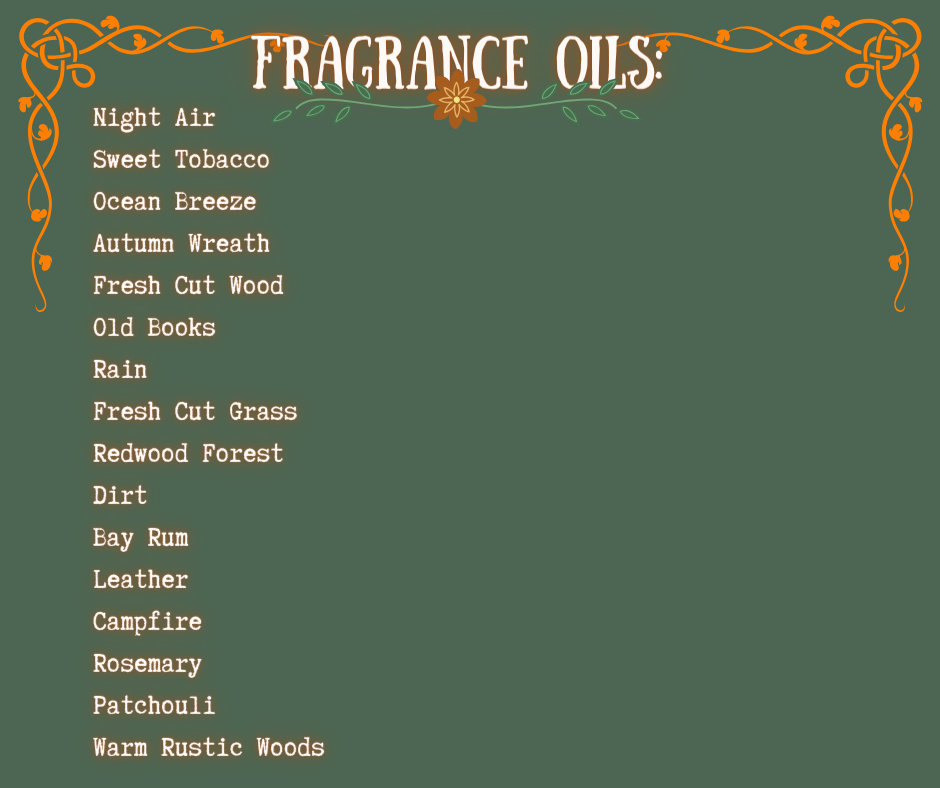 **Since there is no way for me to test them, I am not responsible for any allergic reactions based on the oils/scents of the perfumes. If you have any allergies to the carrier oils listed or possibly to any of the scents, please don't order and choose wisely when picking your fragrance/essential oils.