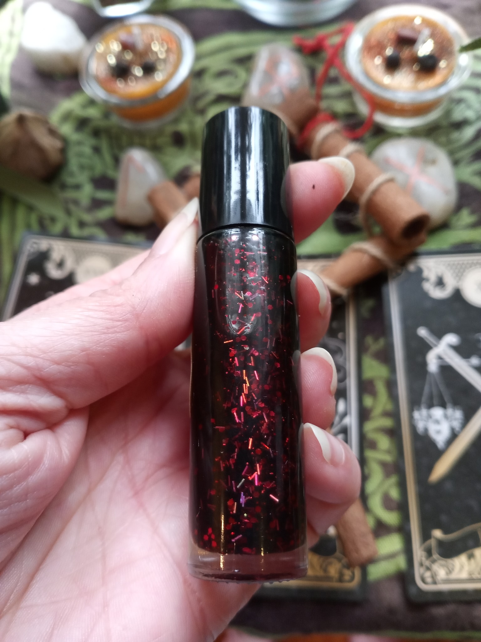 InkDrinker Apothecary perfume oils are hand-blended individually using all natural carrier oils and other ingredients (avocado oil, grapeseed, almond, and vit. E) and high grade fragrance/essential oils with added mica pigments for color accompanied by dried herbs and resins.