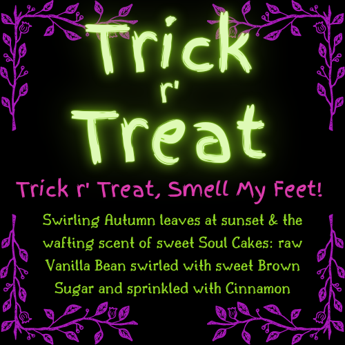 Swirling Autumn leaves at sunset & the wafting scent of sweet Soul Cakes: raw Vanilla Bean swirled with sweet Brown Sugar and sprinkled with Cinnamon.