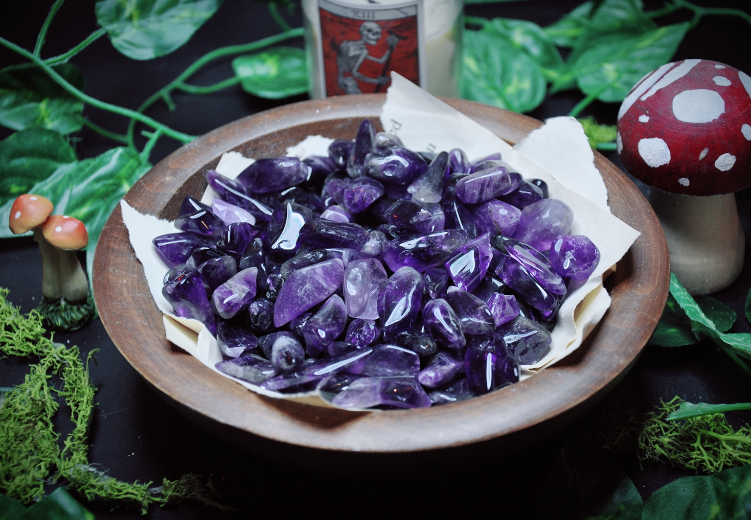 Amethyst assists in encouraging our growth towards our higher potential and spiritual expansion. It also brings peace, insight and calmness, and helps insomnia sufferers sleep more easily.