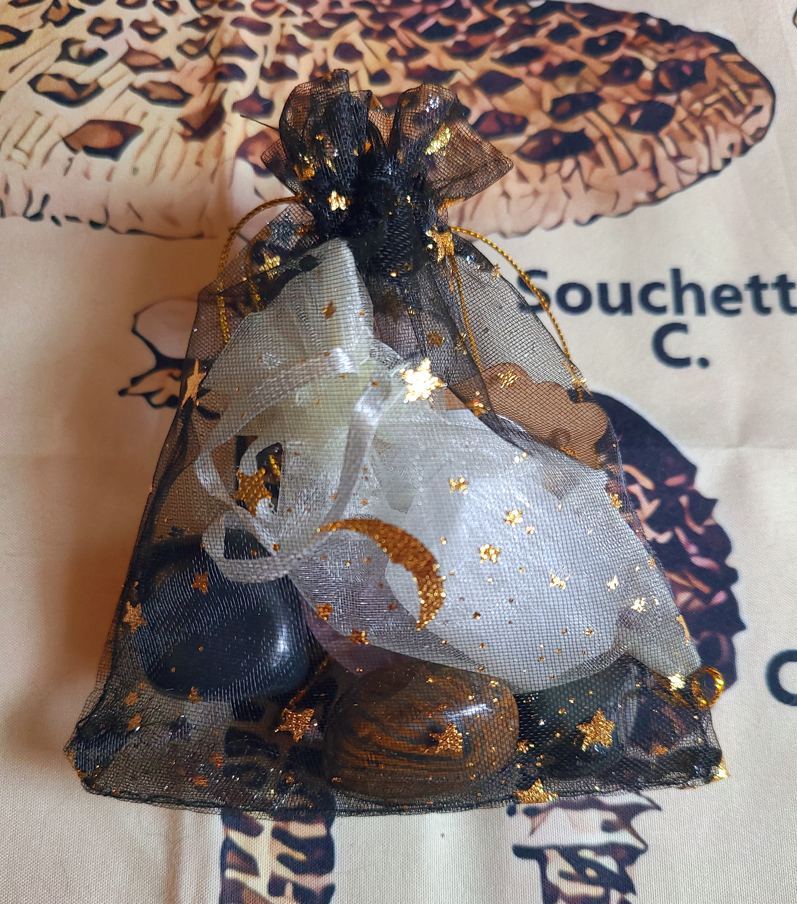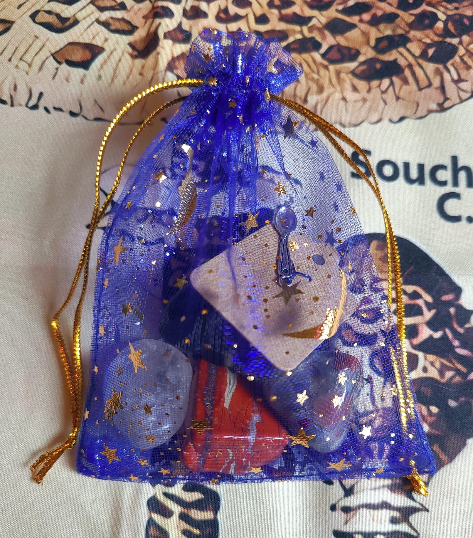 Each set comes packaged in a moon and star organza bag with corresponding color to its intent.