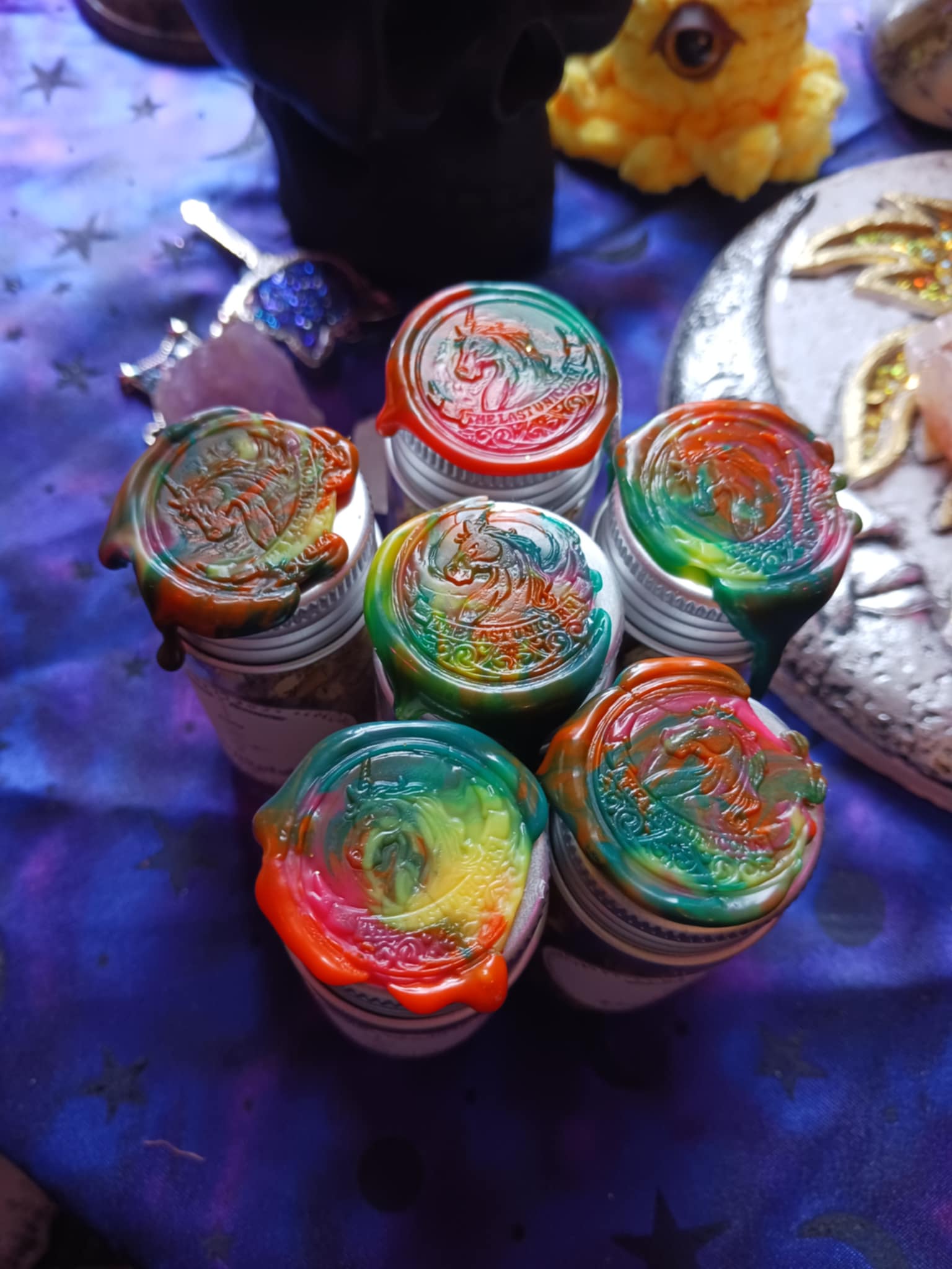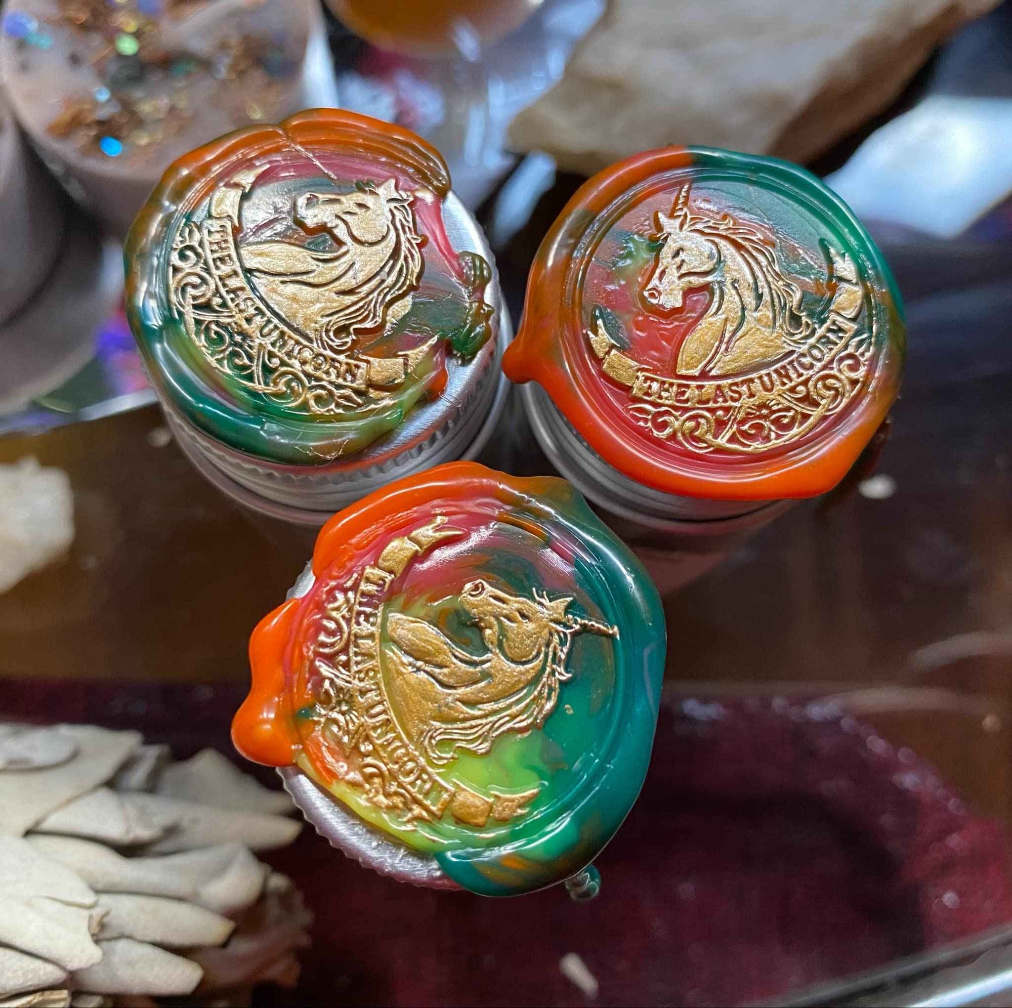 Incense comes in a 30ml vial with aluminum cap, stamped with colorful wax.
