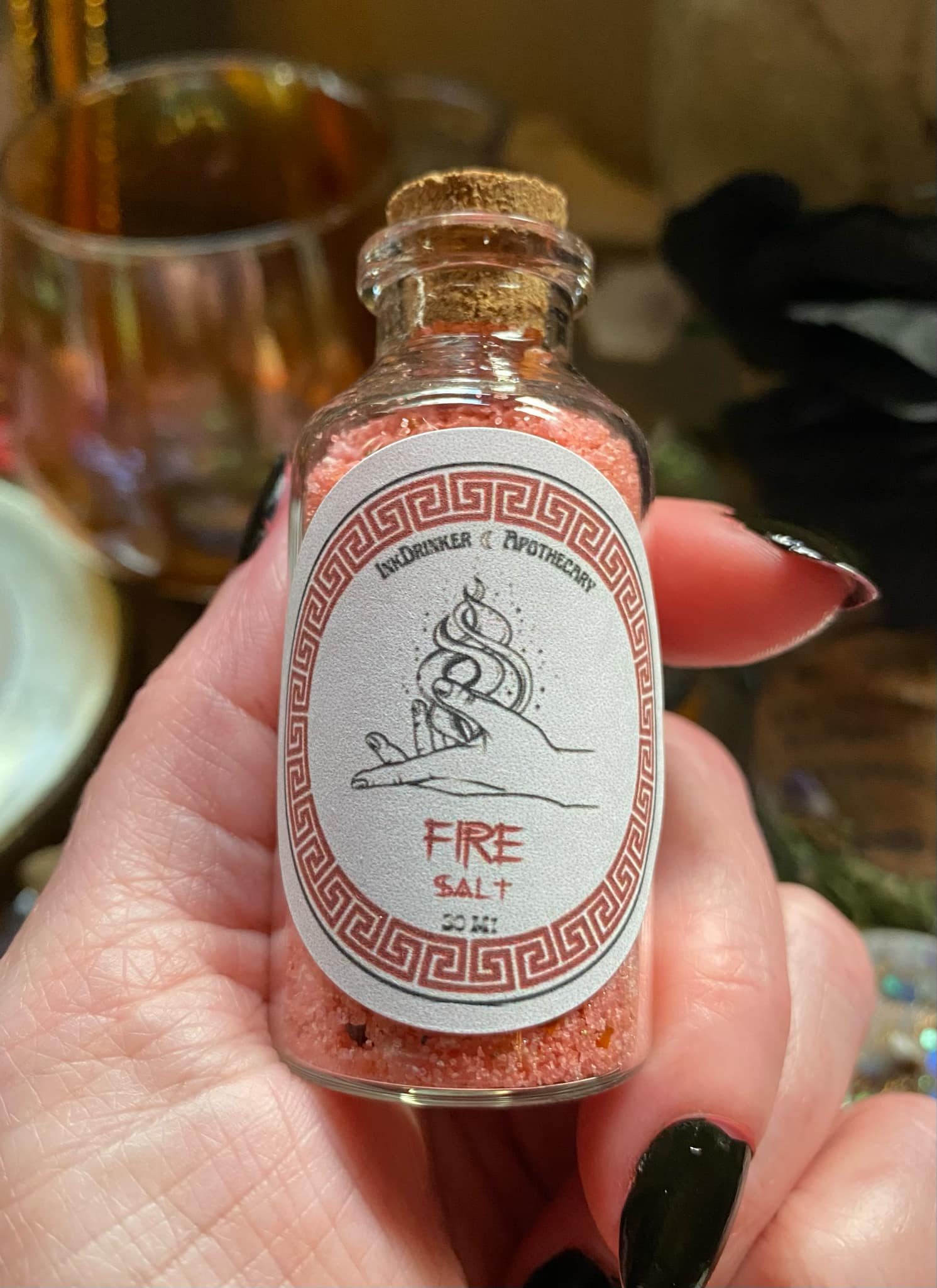 Charged for 13 full days on the Apothecary altar, FIRE salt is a proprietary blend of salts, waters, magikal powders, incense, and herbs: